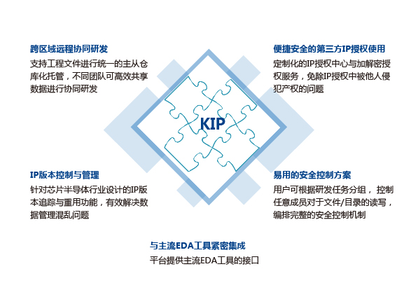 基于知識(shí)產(chǎn)權(quán)保護(hù)的協(xié)同研發(fā)與IP數(shù)據(jù)管理平臺(tái) 用戶友好的IP追溯與重用系統(tǒng),支持網(wǎng) 頁(yè)端操作,提供IP版本標(biāo)定,發(fā)布,重 用,文件倉(cāng)庫(kù)管理,主干分支操作,記 錄回滾,文件對(duì)比, IP加解密及授權(quán)管理等功能。